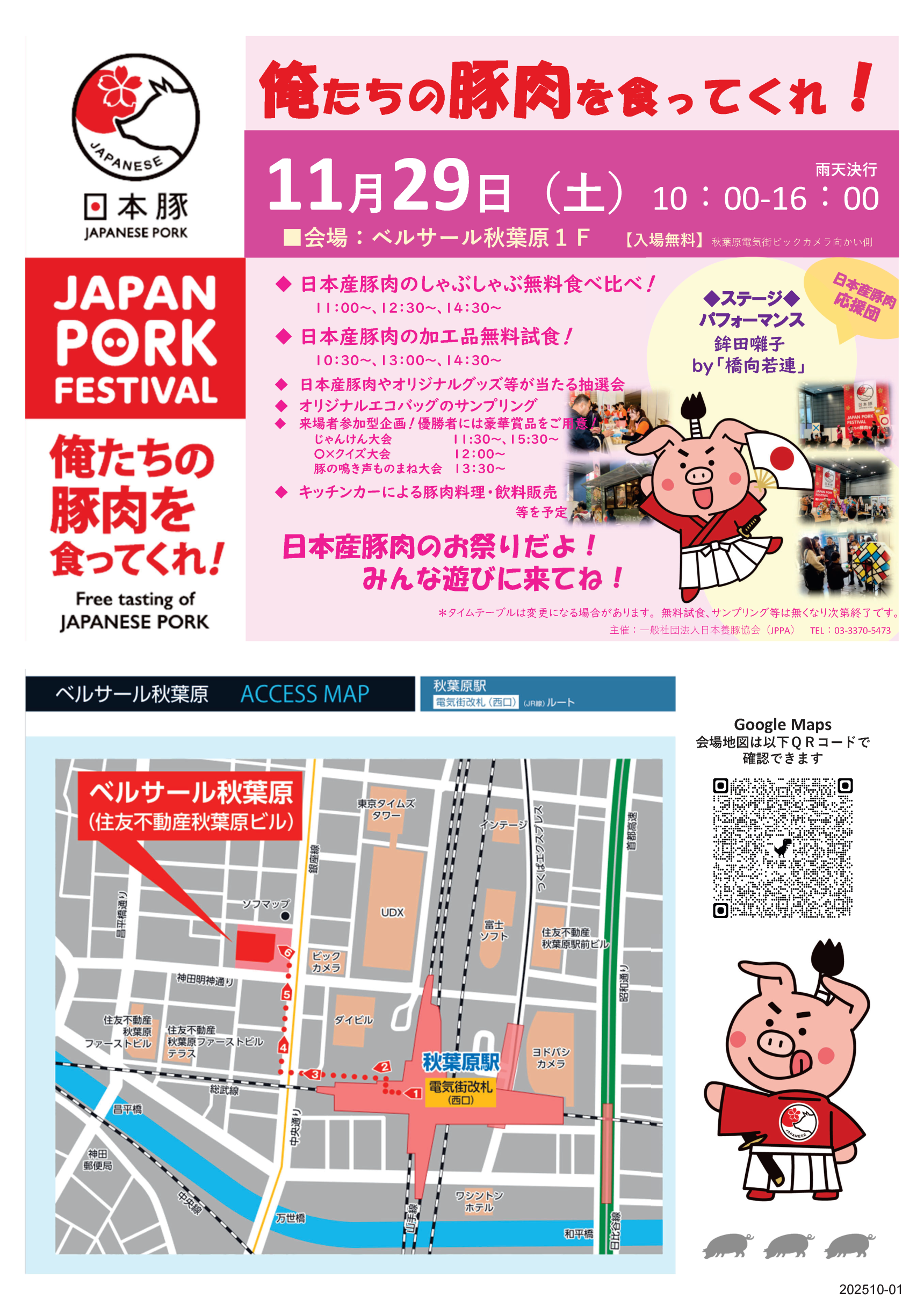 Japan Pork Festival 俺たちの豚肉を食ってくれ!2025開催のご案内 2025年10月7日 最終更新日時 : 2025年10月7日 舞子高野 ※詳細は随時更新予定です ※参加を希望する会員・賛助会員の皆様には別途ご案内を用意しておりますので、JPPA事務局までご連絡ください。 【問い合わせ先】 JPPA事務局TEL:03-3370-5473 担当:高野まで