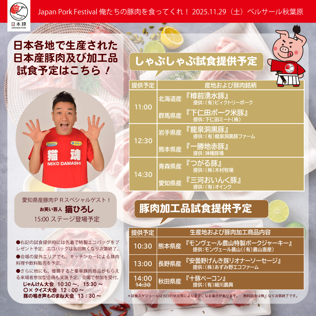試食スケジュール掲載 11/29土・開催Japan Pork Festival 俺たちの豚肉を食ってくれ!2025