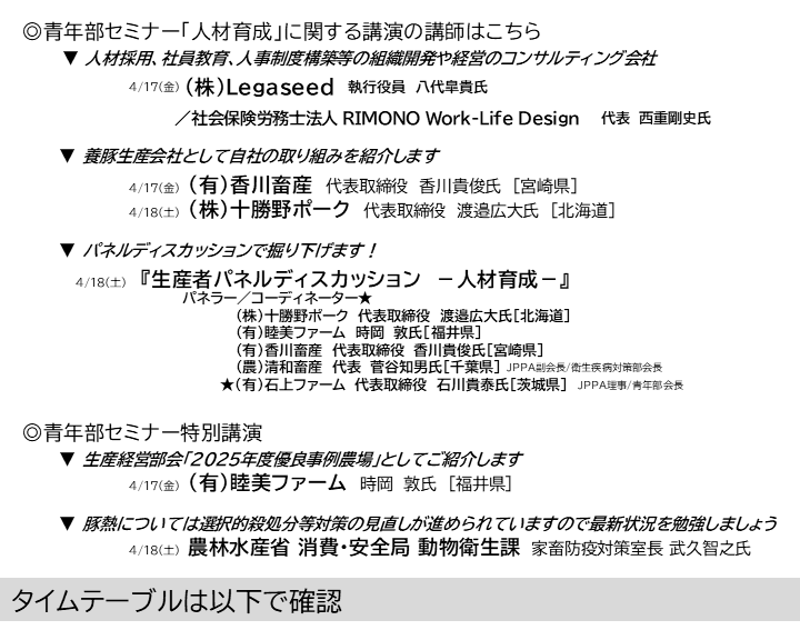 JPPA青年部会は、毎年恒例の生産経営セミナーを下記のとおり開催致します。